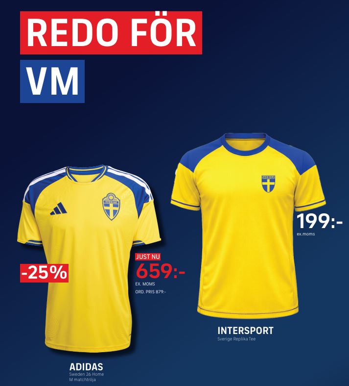 Fotbolls-VM närmar sig med stormsteg och vår samarbetspartner Intersport har tagit fram en replica på en matchtröja och de är även en av få återförsäljare som säljer den svenska officiella matchtröjan från Adidas.